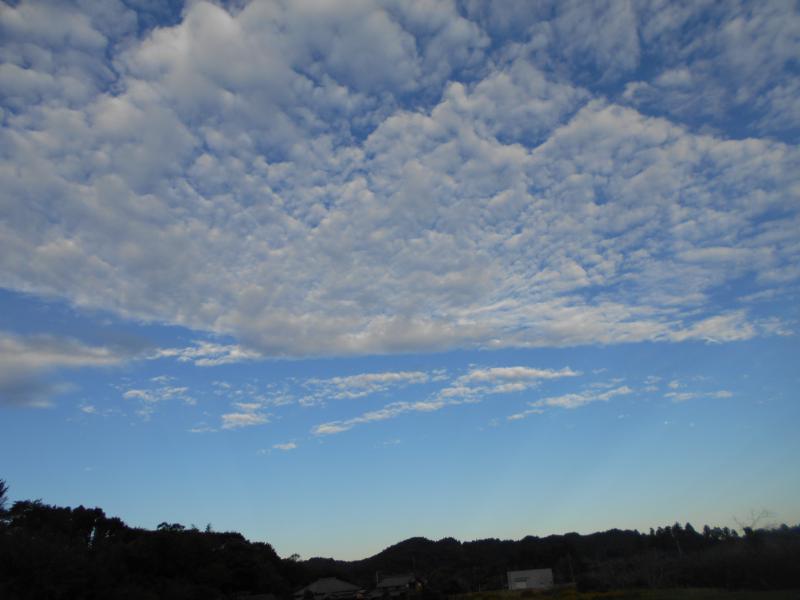 2回目の更新をします。今朝、6時45分に家を出て、地区内の散歩をしました。ちょっと上を見上げました。「やっぱり秋ですね。雲が違ってきました。」雲はあったのですが、晴れ間が見えたので天気は良くなるなと思いました。いろいろな音が聞こえます。鳥の鳴き声・風の音・木々が揺れる音・キジの鳴き声などなど数えきれません。最近、鳥の数が多くなってきました。この空気・この風景を求めて、いすみ市にやってくるのです。「お母さん、何もないって、こんなに贅沢なことはないのよ。」と、宿泊客の皆さんは必ず言ってくれます。最近、ありのままのいすみ市の良さに気づいてきた私です。