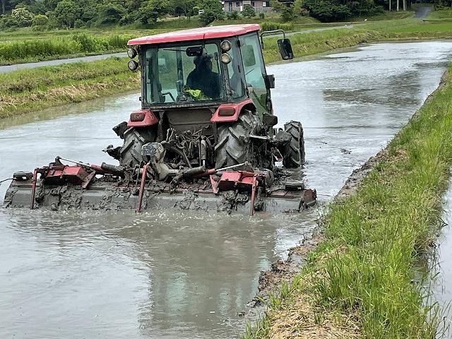 皆さんこんばんは。お元気でいらっしゃいますか?どこの田んぼも、ずっと前に田植えが終わり、稲も大きくなりましたね。我が家の田んぼは、これから田植えです。そのために今、代掻きと言う作業を行っています。田んぼの土を柔らくして、平らにします。もうすぐに田植えですね。大型機械ですから、あっという間に終わってしまいます。機械の力は凄いです。