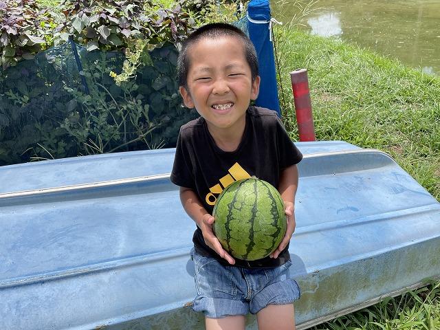 重そうだね、スイカの収穫