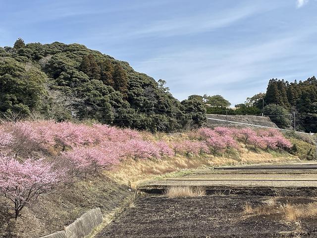 我が家周辺の「河津桜」は、葉桜になり風が吹くたびに、花びらが飛んで行っています。ところが、御宿町の高山田地区の、西武ゴルフ場の入り口近くには、今日、この写真のようになっていました。土手に植えてあって並木のようになっています。場所によってずいぶん違うのですね。たくさん楽しませてくれてありがとう。