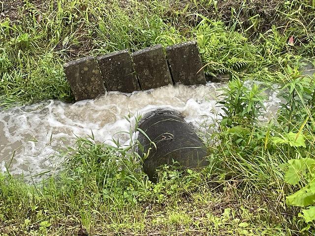 全国の皆さんおはようございます。今、午前9時半です。敷地の見回りをしてきました。雨がずいぶん降ったのですね。私は、昭和46年に千葉県を通過した台風の体験者です。床上30センチ、家の中を鯉が泳いでいました。水の力は想像を絶しますね。総雨量800ミリ(前からの雨量を含めて)。知り合いの子供と祖父と父母が土砂崩れの下敷きでなくなりました。だから家の後ろには山と川を持たないところに嫁ぎたいと考えていたのです。土管から流れ出ていた、今朝の水です。濁っていて凄い勢いでしょう。水の力を甘く見ない方がいいですよ。普段からの備えは本当に大切です。各地の被害が心配です。