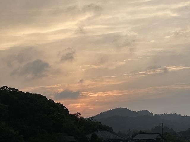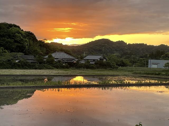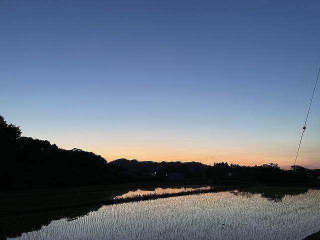 今日も暑かったですね。昨夜の星空も奇麗でした。いすみ市の魅力の一つが星空だと私は、思っています。朝5時からの畑の草取り。土は濡れているしスギナが多くて、時間がかかりました。天気が良くても土が乾かないので作業時間がかかりすぎるのです。「あーあ、一日が終わったな。」と思ってみたのが、この夕日の写真です。今日感動的なことがあったよ。午後4時ごろ知り合いの畑にいたら、田んぼの上を「カワセミ」が飛んでいたのです。瑠璃色が本当に素敵でした。豊かな自然は、宝です。