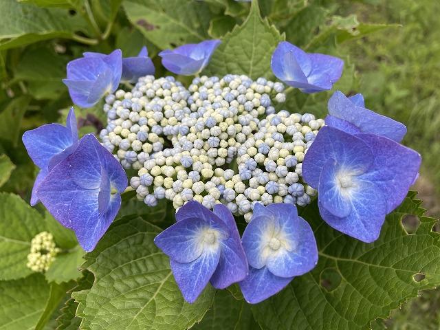 あちらこちらで「アジサイ」の花を見かけるようになりました。しかし、種類が多いですね。毎年新種が出来ています。我が家の庭でも、ほら咲きましたよ。私は、この写真のアジサイが大好きです。その理由は、周りが青で、中が小さな豆粒の様で可愛いでしょ。カタツムリさんは見当たりませんでした。どこに行ったのかな?。明日から、大好きな雨が降りますよ。カタツムリさん。