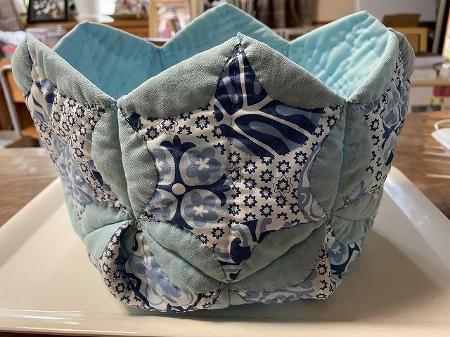 土曜日に宿泊していたお客さんは、5年連続で6月にいらっしゃいます。梅を収穫してジュースやカリカリ梅をつけて帰ります。家の間取りも熟知しているので、説明する必要もありません。「今年も元気でお会い出来て、良かったですね。」で迎えます。毎年、素敵な手作りのお土産を持ってきてくださいます。今年はこの写真の作品でした。夏らしい涼しげな敗色が、とっても素敵でしょう。すべて手縫いです。時間がかかったでしょうね。大切に使わせていただきます。ありがとう。