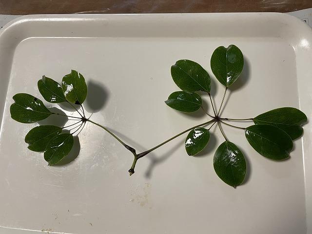 この写真は、今日、雨の中を土手で撮影しました。1本の枝なのですが「あれっ?不思議だな。」と思った人もいるのではないでしょうか。ヒントは、葉っぱです。左右の葉を比較してくださいね。もう気づきましたね。左右の葉の数が違いますね。5枚と7枚で、枝は同じなのに葉の数に違いがあります。私は、びっくりしました。知り合いに確認したら、これは、ムベという果物だそうです。「あっ、アケビと似ているものね。」アケビの実は割れ目がありますが、ムべの実は、開きません。葉の数が統一されていないのです。今回は、5枚と7枚でした。昔は御献上されていたそうですよ。種の周りのゼリー状のものが甘いのです。秋が楽しみです。自然から学ぶことが多いですね。