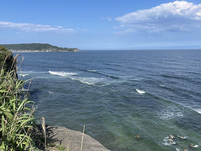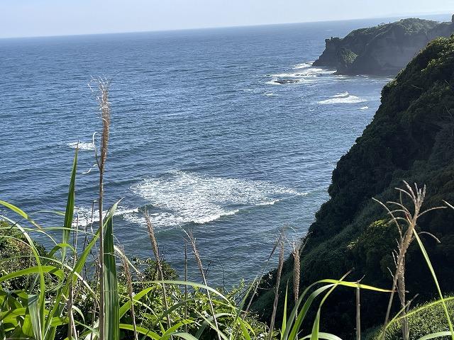 この写真は、オリンピックのサーフィン会場になった近くですね。テトラポットにぶつかった波の飛沫はものすごい迫力がありますね。ここでは、よく釣りをしている人たちを見かけます。7月になると、スカシユリの群生地にもなっているのです。とても、風光明媚なところでもあります。