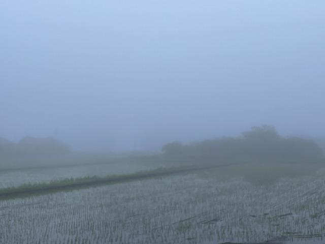 今朝の里山の風景は、霧の中なのか靄の中なのか分かりませんが、本当に先が見えませんでした。こういう時の運転はしたくありません。だから早朝から、しょうがの追肥と土寄せをしました。草がでるだろうな。オーガニックの栽培は、虫と草との戦いなのです。健康維持と安全な食を求めて、頑張ります。