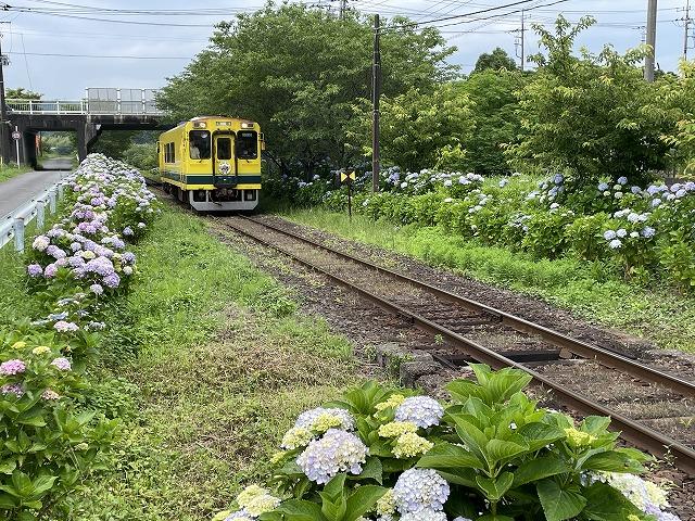 ローカル線「いすみ鉄道」の西畑駅の近くには、線路の片側に紫陽花の花が植えられています。「あら、今日は2両編成ですね。」だからちょっと車両が長かったです。アングルが難しくて、あまりよく撮れなかったです。そろそろ紫陽花も終わりに近づいていますね。今年の発見でしたが、いすみ鉄道と紫陽花のコラボは写真になりますね。