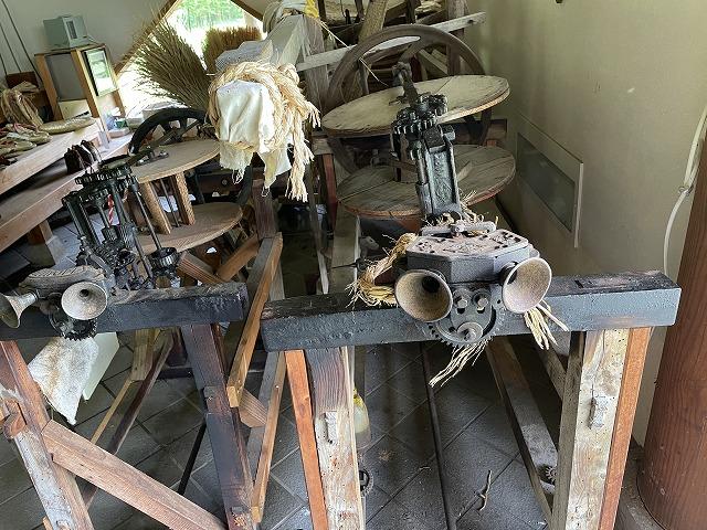 雨が降りませんね。畑の水かけをしなくてはいけません。困った困った。午前中ちょっと時間があいたので、「いすみ環境と文化の里」に行ってきました。「わぁー、私が子どもの頃に使っていた機械だ。なつかしいな。父がこの機械で夜なべをしていたな。」夜なべとは、昔、農家では夜になると、むしろをおったり、縄をなったりしていました。そのことを夜なべと言います。この機械は、どんな時に使いますか?私の亡き父がよく使っていました。左右のラッパみたいなところに、数本の藁を交互に入れていって、縄を編むのです。つまり。「縄編み機」または「縄ない機」と言います。今も使っている人がいるのですかね。見てみたいな。
