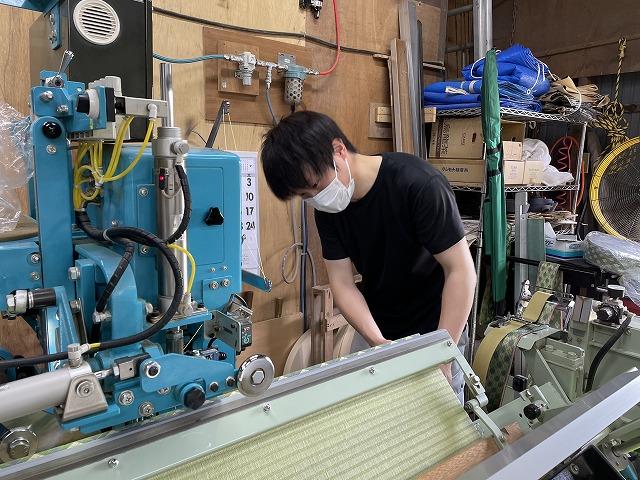 全国の皆さん、こんにちは。この写真を見たら、どんな仕事をしているのか想像はつきますね。私の知り合いの畳職人さんの家です。京都に畳職人になるための修行にでて、後継ぎとして、家に戻りました。父の背中を見て、ずっと育ってきたわけです。写真の作業は、畳の縁をつけているところです。父親の話では、「畳職人は数学が大切なのです。」と言うことでした。細かい数字を出していくのだそうです。私が苦手な数学です。二人三脚で、父の後を継ぎ、立派に巣立ちましたね。謙虚な息子さんは、「いやあ、まだまだです。」と言っていましたが、そんなことはありません。この畳はイ草の匂いがしません。和紙の畳です。最高の畳ですね。私は、数学は苦手でも、和紙の畳は大好きです。我が家にもたくさん入れてあります。頑張ってね。池田畳店。(許可をいただいて掲載)