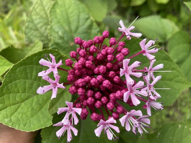 我が家には、プレゼントをしてくださった花木がたくさんあります。この花も近所の方からいただいたのを、私が植えたのです。今では、子株が増えました。アジサイに似ていますが、違うのです。花の名前は「ボタンクサギ」と言います。この花は、中国南部原産で冬に葉を落とす落葉性の低木です。日本でも、暖地や平地で野生化したものが、よく見られます。花には、かすかな芳香があります。花言葉は、「輝く美しさ」です。これから、たくさん増えると思います。花木のプレゼントは、花を観て、その人を思い出せる瞬間があるということです。お元気ですか?。花が咲きましたよ。