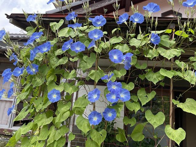 我が家にはアサガオの花が、たくさん育てられています。毎日毎日、咲く花の数が増えています。終日アサガオなので夕方まで咲いています。つる性なので上に伸びるため、見応えがありますね。下の葉はキョンが食べてありますよ。増え続けるキョン。困ったものです。