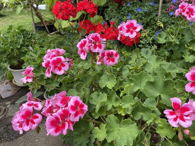 我が家の玄関には、この写真の花がたくさん咲いています。皆さんは花の名前をご存知ですか?。馴染み深い花ですよね。名前は「ゼラニウム」と言います。独特の香りのある葉を持つ品種は「ハーブゼラニウム」として知られています。花言葉は色によって、違います。赤は「君がいて幸福」、ピンクは「決意・決心」です。花言葉を思い出して,私も生活をしたいです。