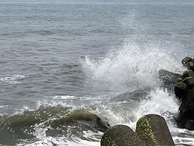 スカシユリが咲く反対側は、大海原です。今日は、比較的に穏やかでしたがテトラポットや岩肌にぶつかる波の迫力は、凄かったです。勢いがありますね。私にも壁にぶつかったときに はねのけるバネガあったらいいのになと思います。