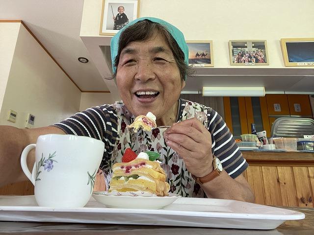 私は、先月から、自分で自分を褒める日を作ろうと考えていました。理由はここ2週間、早朝5時から畑の草取りをずっと続けていました。朝から汗だくで戻っても、誰からも声はかけてもらえません。むなしくなりますが、自分が好きでやっているのだから仕方ありませんね。そこでこの日を設定したのです。今月はケーきで頑張り賞をしたのです。こんなに美味しいケーキがあったのですね。今月もファイトで行きます。