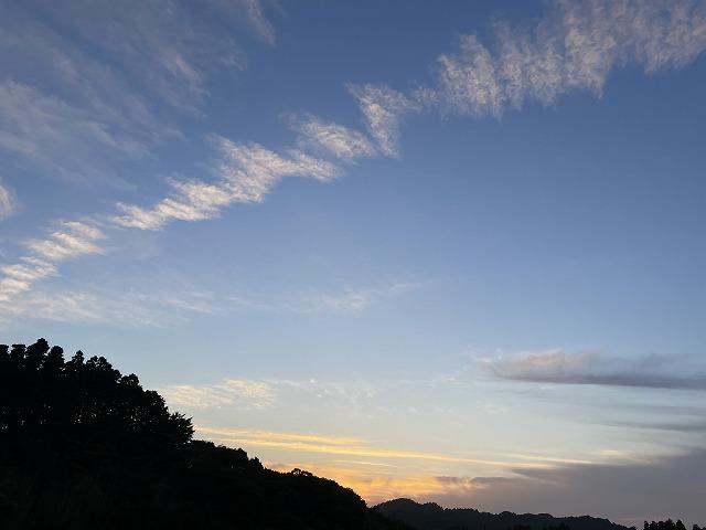 全国の皆さん1週間が始まりました。元気よく登校や出勤ができましたか?。熱中症には気を付けてくださいね。この写真は、早朝に撮影しました。外に出て分かったのですが、「今日は暑いな。湿度も高いな。」と肌で感じたのです。出ている雲を眺めていました。ゆっくりと動いていました。それが分からないぐらいの動きです。時の流れが感じられないくらいでした。ゆったりとしていていいな。一瞬そう思ったのですが、私はすぐに畑に出ました。早く家の中に入りたかったのです。