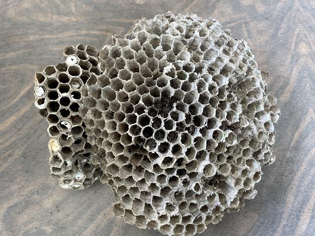 都会から、植ちゃんの宿に宿泊する人たちは、虫の嫌いな人が多いです。例えば、蜘蛛・蚊・ムカデ・蜂・蛇などです。私のように里山で生活していると日常的に見かける生き物です。以前、我が家に宿泊して最近、いすみ市に移住してきた人がいます。ラインの内容によると「昨日外でムカデを2匹見たのですがどうしたらいいですか?」。私も2回刺されていますからね。特に外作業をするときは、素手は禁物です。必ず手袋をやってね。そして、家の中に入らないように内外に薬を蒔くことを進めました。もし、刺されたら、場所を指で持ち上げて水を出しながら毒を出すと痛さやしびれが弱くなるからと教えました。この写真は、あしながバチの巣です。私も刺されたことがあります。蜂が飛んでいたら近くに巣があると思った方がいいです。蜂退治のスプレーを用意するといいですね。皆さん、甘く考えないでね。