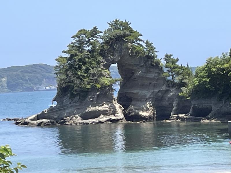 いやあ、昨日も暑かったけど今日はもっと暑いのかな。そんな中、真夏日ゼロでテレビ放送されている勝浦市に行ってきました。確かに木陰に入れば海からの涼風が吹いてきます。私はこの写真の場所が大好きです。「めがね岩・尾名浦」と言います。波による浸食と風化で、真ん中にぽっかりと大きな穴が開いた「めがね岩」です。見慣れない不思議な光景が広がっています。ここから、太平洋の荒波の強さを目の当たりにする場所ともなります。海水の透明度も澄んでいます。