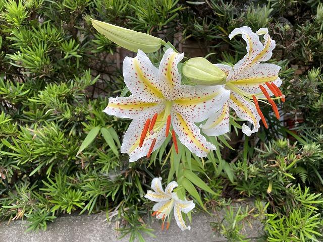たくさんの品種があるユリ科。その中でもヤマユリは、自然の中で咲いているため、散歩中に見かけることがあります。今年はどういうわけか、開花しているところをあまり見ません。球根をイノシシが食べて減ってるという話を聞いたことはあります。ゆり根は、私たちが食べても美味しいですからね。みんな大好物なのでしょう。