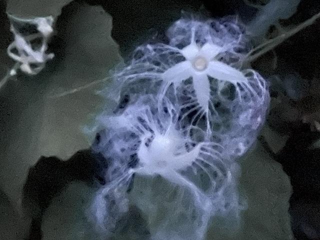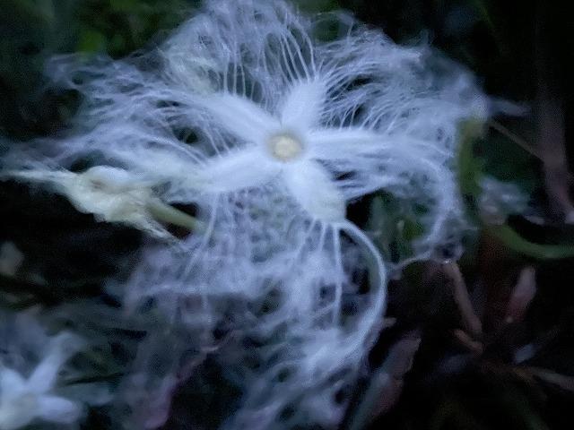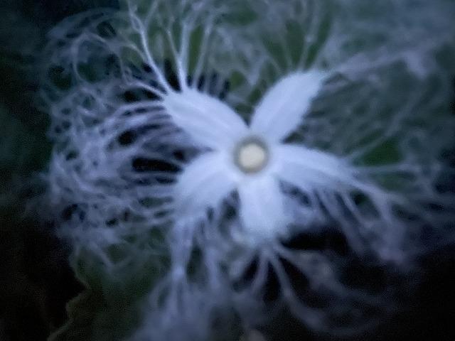 昨夜、私は「カラスウリ」の花の撮影をしていました。夜になると、レースの糸を伸ばして、まるでダンスでもしているようですね。この動くきが一つ一つみんな違って、よく観察していると、だんだんと花に近づいていくようになります。昼間は、静かにしぼんでいるのです。面白いね。カラスウリさん。