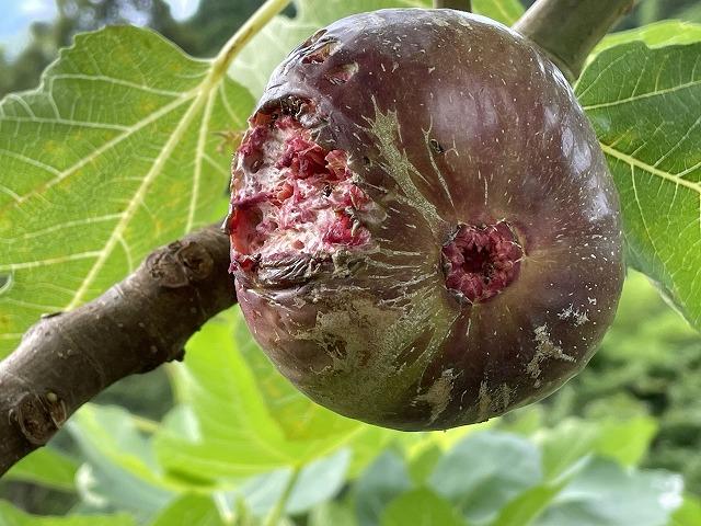 私は、イチジクの木を見に行きました。「たくさん、実をつけているな。あっ、赤くなっている実が1つあるよ。」よくよく見たら、アリが集まって食べていたのです。「アリさん、きっと甘くて美味しいのだね。だって、私より先に食べたもんね。いいよ。美味しいものは、みんなでいただくのよね。お福分けです。」ちょっぴり残念でしたが、これから食べられるから、我慢しますね。
