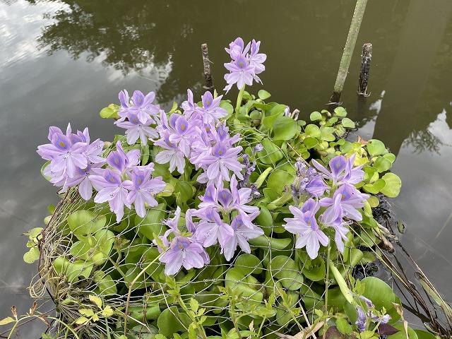 今日は、曇天でしたが湿度が高かったですね。3連休の初日ですがいかがお過ごしでしょうか?。我が家の前の休耕田では、いつも水が入っています。そこに、この写真の花が咲いています。メダカを飼っている人は分かるかもしれません。水草の一種なのです。だから根元にメダカが卵を産み付けるのです。薄紫色をしています。花の名前は「ホテイ草」です。水質浄化の効果もありますね。