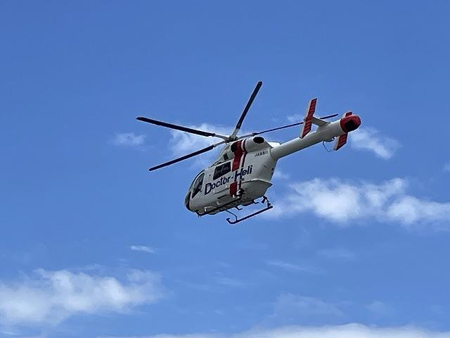 私は今日、鴨川に行きました。そこには、ヘリポートがあり、珍しく着陸して待機していました。いつもだったら我が家の上空を飛ぶ姿を見るだけです。間近で見るとものすごく大きいですね。「あっ、エンジンの音」とにかく、爆音に近いです。プロペラが回りだしました。まっすぐ上に浮き上がります。その後は、目的地に向かって飛ぶのです。どんな人を迎えに行くのかな?。私が帰る方向に飛び立ったので、気になりました。