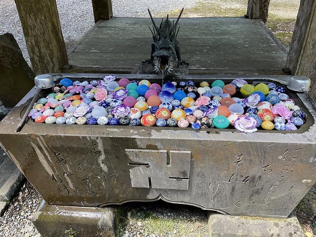 皆さんは、寺社の入り口の近くで、龍や亀の銅像の口から水が流れている場所を、見たことがありませんか?。この水場が「手水舎」と言います。参拝前にここで、身と心を清めることを「手水」と言います。以前は、花を使って手水を行うことを指す言葉でした。よく見てください。花だけではなく小さな毬や風船なども浮かんでいましたよ。一般の家庭でも最近は、玄関に「花手水」をアートとして設置してあるところがあります。私も、去年はやってみました。今年もそろそろやりますかね。心が、スーッとしますよ。