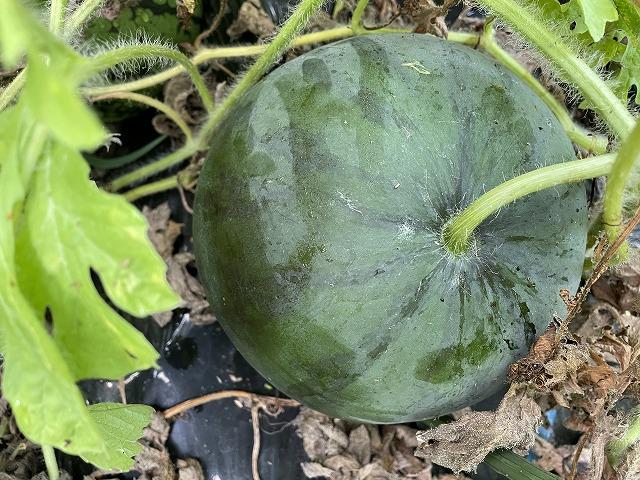 全国の皆さん、お変わりありませんか?。私は、この暑さにまだ慣れないでいます。クーラーを使うということはあまりなかったのに、それだけ暑いということです。畑の水まきがもう大変です。夏野菜が高騰するのではないかと心配しています。私が育てているスイカが大きくなりました。孫が来ているので、そろそろ収穫しようと考えています。今年は、地面を這う野菜はあまりよくなかったです。カボチャ・ウリ・メロン・スイカなどです。受粉をしなければいけないのですが、雌花が少なかったように思います。その年の天候に左右される野菜作りは、難しいのです。