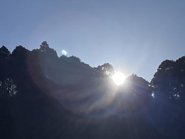 私は、元旦の日の出の撮影は、勝浦市の松部海岸にいました。どこもいっぱいだったので、家に帰りました。ところが、私の家は、里山なので山があり、太陽がなかなか出てきません。午前9時です。山の木と木の間から、太陽が顔を出しました。やっぱり海の方がいいですかね。海は、色に変化がありますからね。見ている人たちは、「うわぁー。」と歓声をあげますね。
