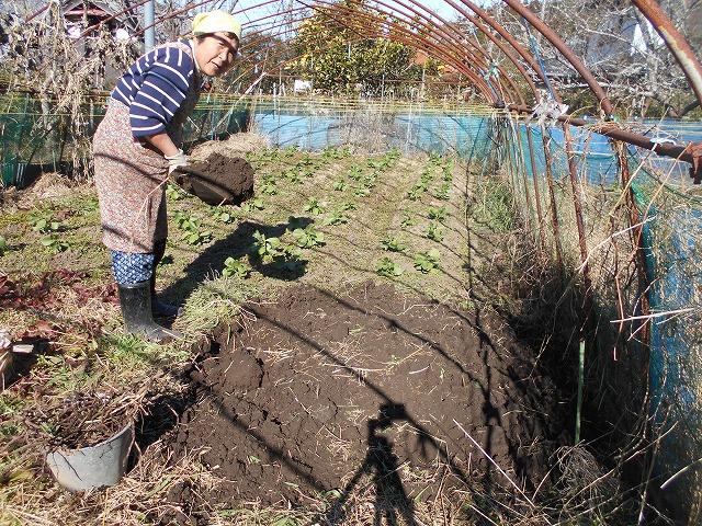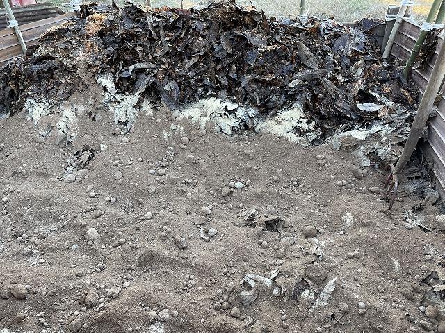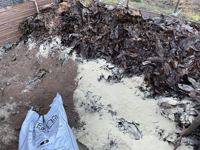私は、今年の目標でもある「手作り有機堆肥場」の管理をしっかり行い、畑の中に入れよい土にすることで頑張っていきます。1回発酵し温度が上がったので切り返しをしました。ところが、その後、温度が下がったままになってしまいました。難しい。本当に難しい。たい肥センターの所長さんの指導で、土着菌を4袋とぬかを入れることにしました。掘り起こして混ぜなくてはいけません。腰が痛いも痛いも大変でした。オーガニックの野菜は、甘くて美味しいのですが、思っているより大変だということです。自分でやってみて初めてわかるのです。言葉だけ先行するのが、私はちょっと怖いなと感じています。あきらめませんよ。ここまで来たので頑張ります。